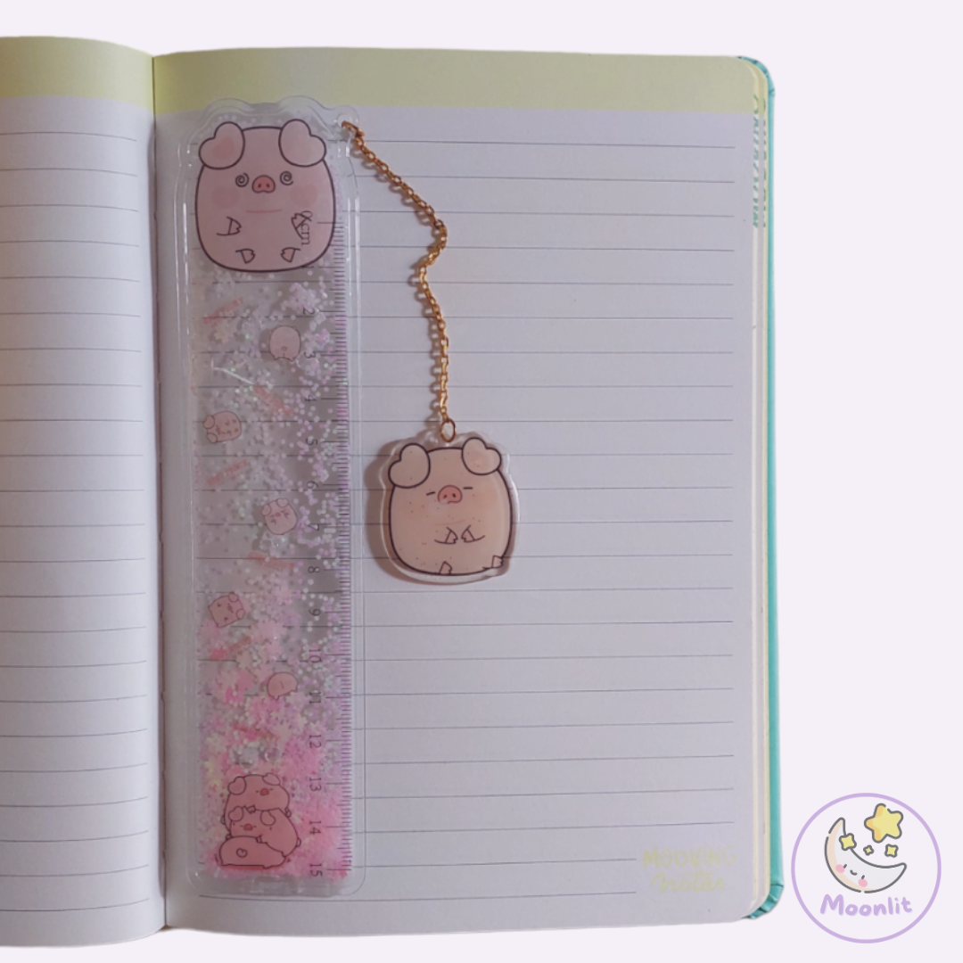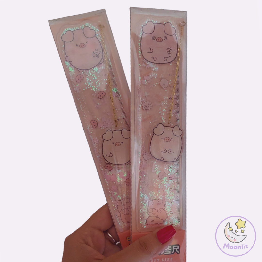 Tiene brillitos, cadenita y dije. Por su tamaño mediano, se puede portar en una cartuchera.